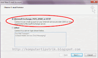 • Beri Ceklist pada Microsoft Exchange, POP3, IMAP, or HTTP , kemudian klik Next