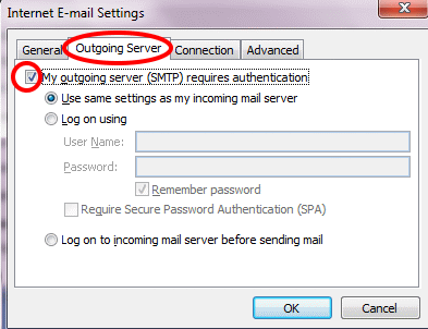 • Di Tab Outgoing Seeting, beri ceklist pada My outgoing server (SMTP) requires authentication, kemudian klik OK